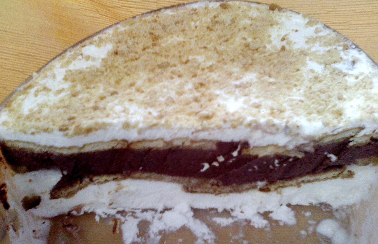 Por cima verter metade do preparado das natas e das claras, seguido da restante bolacha maria, cobrir com o restante preparado.